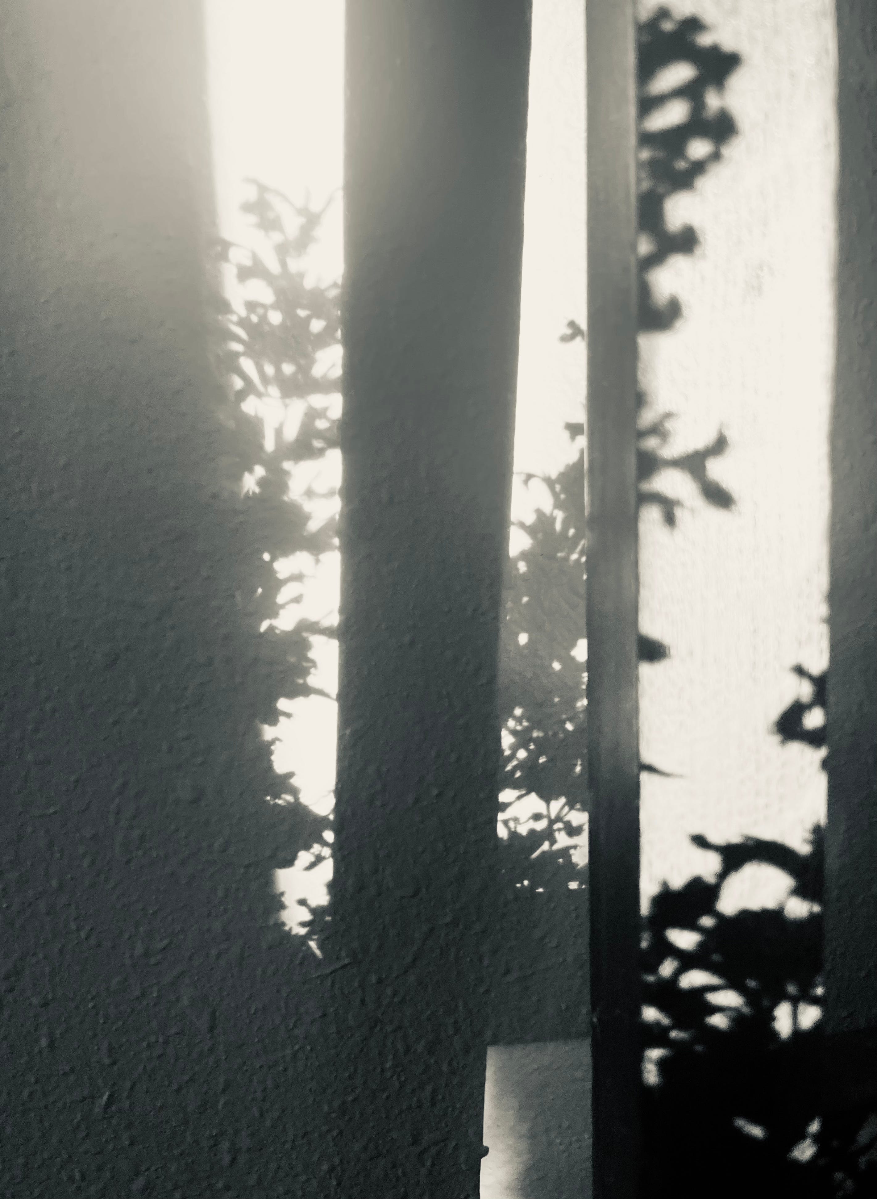 Morning light through cloudy glass warms the vinyl tablecloth, illuminates the steam rising from her coffee. Every morning, buttered toast, made from the cheap wheat bread. She licks her finger and picks up every crumb.